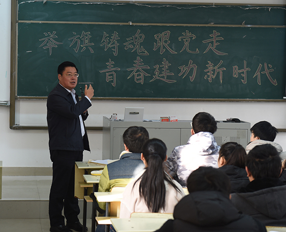 12月20日下午,陈德静副书记走进他的联系班级——计算机161班“举旗铸魂跟党走,青春建功新时代”主题班会现场,与同学们畅谈十九大精神。陈德静副书记充分肯定了同学们学习党的十九大精神的成果,他指出,“举旗铸魂跟党走,青春建功新时代”这一主题班会活动需要青年大学生牢牢把握四个核心问题:一是旗帜问题,即高举社会主义伟大旗帜;二是目标问题,即决胜全面建成小康社会,获取新时代中国特色社会主义伟大胜利,为实现中...