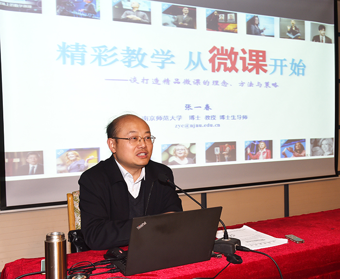 12月6日,我校2017年第四期教师工作坊在至勤楼·行政中心学术报告厅举行,南京师范大学张一春教授应邀走进本期工作坊,为我校青年教师讲解“打造精品微课的理念、方法与策略”。
