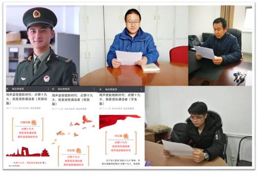 “习近平总书记用3个半小时作了3万多字的报告,深深地打动着每一位中国人的心。那我们该用怎样的方式将党的十九大报告学习好、宣传好呢?”“我们希望利用声音这种传播方式,在学院师生互相诵读、互相倾听的良好氛围中深切体会中华民族伟大复兴的内涵,深刻感受中国气度和中国力量。”该活动负责人这样谈及活动初衷。