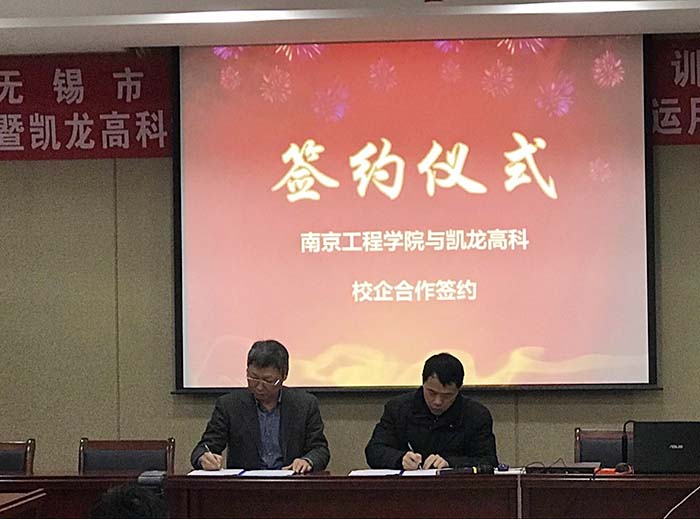 在凯龙公司,杨征宇副院长与企业董事长、高级工程师臧志成等领导进行了深入交流,双方就人才培养、学科建设、科技研发、青年教师工程能力强化、新能源汽车发展等方面的合作达成了一致。杨振宇副院长表示,凯龙高科具有高度的社会责任感,为国家的清洁能源、绿色环保做出了贡献,我校的教师要学习凯龙精神,加强业务修养。他对凯龙对凯发k8官网多年的就业保障表示感谢,同时也表示,凯发会根据企业的人才需求、科研需求等进一步深化人才培养方案和强化师资力量。调研期间,公司还与汽车与轨道交通学院签订了全面合作框架协议。