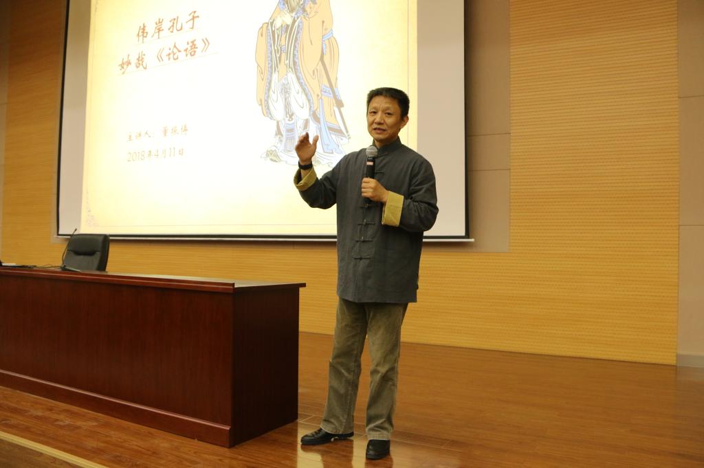 4月11日晚,我校第二十二期天印讲堂在至美苑·设计楼南楼多功能影视厅举行。国学学者董振博先生带领我校300余名师生一同追思先贤孔子,感受《论语》的魅力。