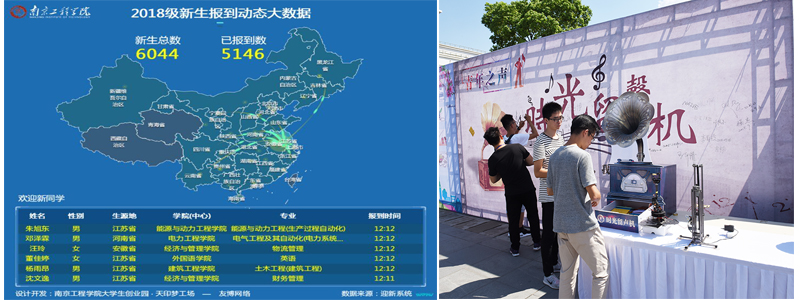 科技迎新细致入微。今年的迎新,“科技元素”随处可见。在凯发“迎新网”,新生通过学号登录报到系统即可查看宿舍安排、缴纳学杂费、选购床上用品、生活用品和军训服装等。据统计,通过“迎新网”订购生活用品的超过新生人数的二分之一,新生到校前,这些用品就已提前放到宿舍。报到时,学生只要扫一扫通知书上的条形码,不到一分钟即可完成报到手续。为了让新同学能更快的融入校园生活之中,迎新网上加入了GIS地图服务系统,推出“凯发k8官网地图服务系统”,为同学们提供精细化的校园地图和全方位的交通导航。通过迎新大数据,凯发还能够准确掌握新生到校方式,接站服务变得更加精准到位。迎新当天,北大活广场的LED大屏上,滚动播出校园宣传视频的同时,还实时播报新生报到动态大数据,科技感十足。学工处大学生心理健康教育指导中心摆放的“时光留声机”旁,自动化学院学生制作的机器人从新生的手中接过五彩缤纷的时光信件,传递到留声机中,吸引了不少新生的好奇心。