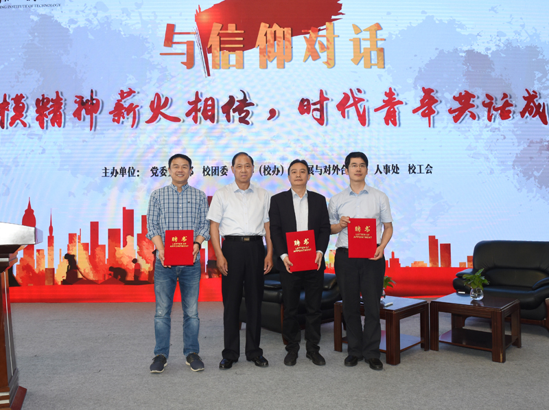 三位劳模校友在生产一线都工作了20多年,在与师生交流的过程中,他们说的最多的是“工匠精神”这个关键词,在他们看来,无论现代工业如何发展,敬业、严谨、坚持不懈、追求极致的工匠精神永远不会过时。“从制造业大国到制造业强国,需要大量高素质应用型科技人才,我们非常愿意能在母校为工匠精神的传承出一份力”,他们欣然接受了我校党委副书记、副院长陈德静为他们颁发的“创新导师”聘书,并表示,十分希望大学生走进自己的劳模工作室,接力创新,力争成长为未来的大国工匠,为创新中国奉献智慧和力量。