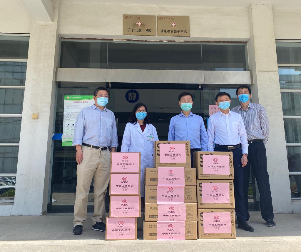 5月18日,工商银行江宁支行汪立军行长携工作人员通过财务处向我校捐赠医用口罩2000只、洗手液96瓶和酒精消毒棉片4箱等防疫用品。财务处现场办理了捐赠物资接收手续,并随即转交凯发疫情防控指挥部(校门诊部代收),根据凯发统筹安排,用于凯发疫情防控工作。