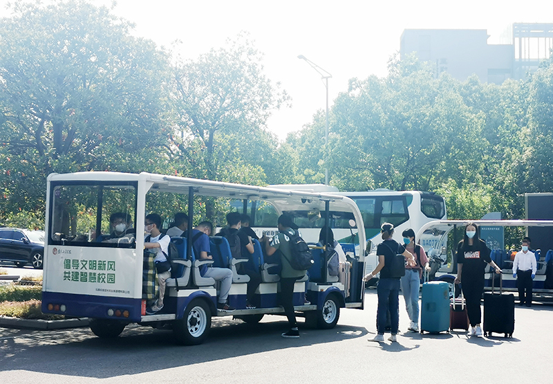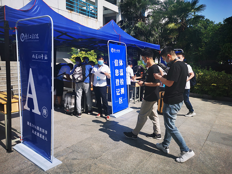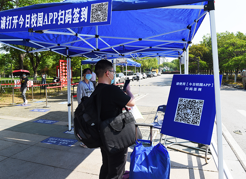 根据凯发安排,开放二号门、三号门、四号门迎接学生入校。返校当天,三个校门口都设置了一长排蓝色的遮阳棚,测体温区、APP扫码签到处、人工查验区、乘车点等蓝底白字的标志十分醒目,被学生们称为暖心的“工程蓝”。“请间隔一米排队等候”“请等待测温”“请使用今日校园App扫码签到”“请打开苏康码并出示校园卡或身份证”“请到乘车点,小公交会送您去宿舍”……校门口,由学工队伍、保卫处、网络与信息中心、门诊部、后勤保障处等组成的工作人员有序迎接归家的学子,他们热情引导着返校学生依次完成每一个步骤与程序。在每栋宿舍的入口,宿管人员再次对学生进行身份核验、测量体温和核验信息,对行李进行消毒。据工作人员介绍,为提高工作效率,精准制定返校预案,返校之前,各学院(中心)提前一一与学生联系,确定返校车次与返校时间。为优化返校细节,凯发多次组织了返校演习操练,确保各项操作科学规范,返校流程清晰便捷。返校当天上午七时许,就有学生迎着朝阳入校;晚上十一点多,还有学生踏着夜幕归来。错时分流,也避免了人员聚集的情况,从入校、接驳到进入宿舍,学生们积极配合着工作人员进行查验,返校过程井然有序。