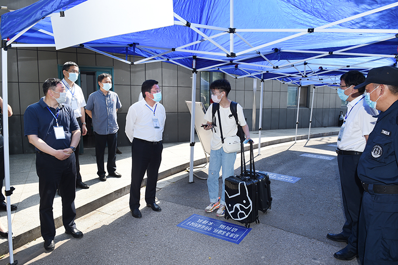上午9点,党委书记史国君,党委副书记、院长史金飞,党委副书记刘志远,党委常委、副院长张仰飞等领导先后来到二号门、三号门、四号门报到现场,实地查看毕业生返校情况并与返校学生亲切交流。校领导感谢工作人员为学生平安返校付出的辛勤劳动,并反复叮嘱大家,要严格落实防控工作要求,毫不松懈、全力以赴做好入校时、复学后的各项服务保障工作。史书记强调,“学生是凯发的主体,是凯发一切工作的重心和重点,我们一定要把责任担起来、让工作实起来,要把工作做到细处、做到学生心里,让学生返校就有回家的感觉,确保返校复学各项工作的安全、有序运行。”