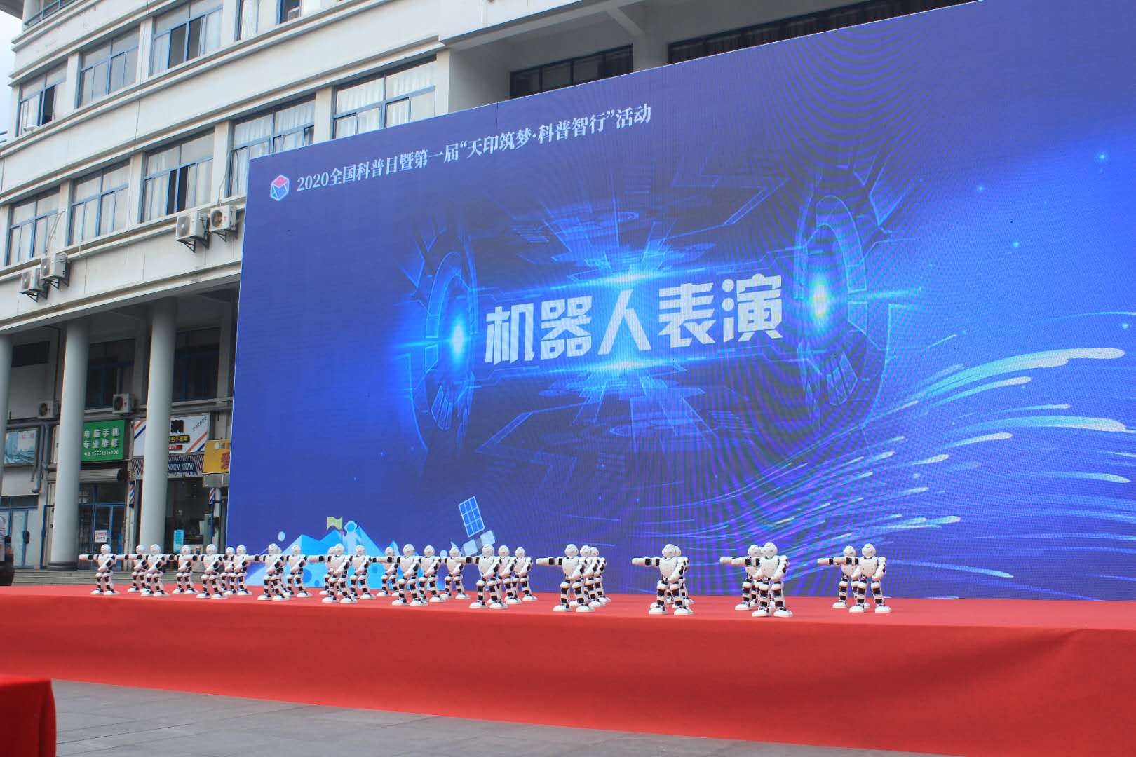 活动伊始,32台春晚同款机器人舞蹈表演秀首先映入公众眼中,机器人的精彩表现将科学与表演艺术完美融合,以表演的形式传播科学知识,点燃现场观众的激情。