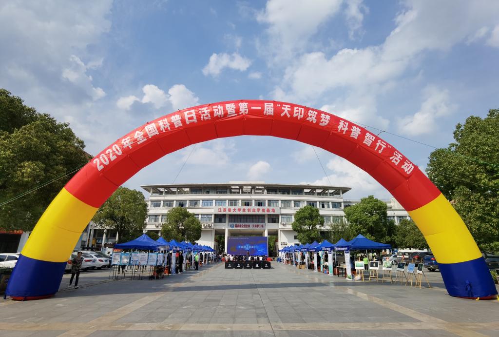 9月28日下午,我校至馨苑·综合服务楼广场热闹非凡,2020年全国科普日活动暨第一届“天印筑梦 科普智行”活动在这里正式拉开序幕。此次活动由江苏省科学技术协会指导,我校和江苏省学会服务中心、江苏省机械工程学会联合主办。江苏省科学技术协会二级巡视员杨文新,江苏省科学技术协会科普部部长严道明,江苏省学会服务中心主任马立涛,江宁高新区党工委副书记沈哲,亚杰商会秘书长郭基梅,江苏省机械工程学会办公室主任刘志超,我校党委常委、组织部部长朱松青出席了本次活动。来自全省的科普工作者代表、科普志愿者代表、南京金宝宝博学苑幼儿园家长和小朋友代表以及我校师生代表500余人参加了启动仪式。