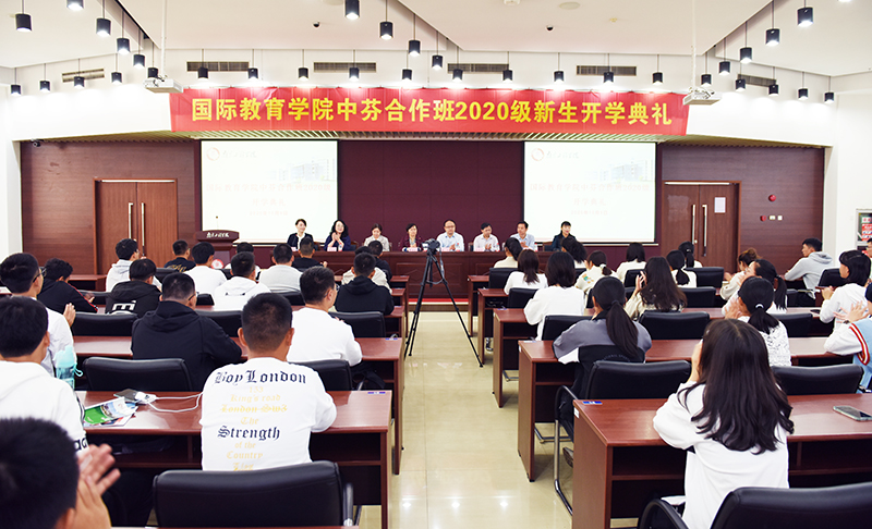 10月9日上午,我校中芬合作班2020级新生开学典礼暨第二届“中芬文化月”开幕式在至勤楼·行政中心二楼多功能厅举行。校党委副书记、副院长曹雪虹,学生工作处、教务处、国际合作与交流处、校团委、计算机凯发、国际教育学院等相关部门负责人和2020级中芬合作班全体新生参加了本次活动。