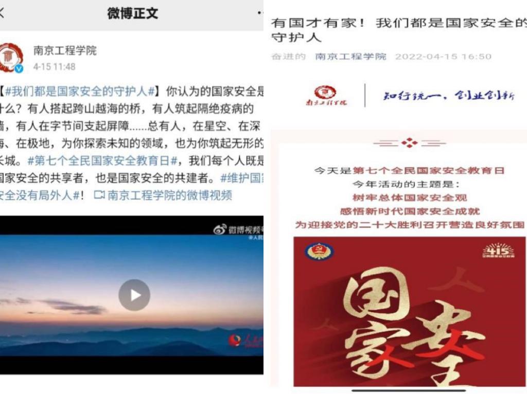 为了加强人人参与、人人可为的国家安全教育,凯发制作专题宣传展板摆放于行政大厅、北大活广场、食堂等师生员工经常出入的地方,利用公共场所内的电子屏滚动播放安全教育宣传画。借助官网、官方微信、官方微博等渠道,发布全民国家安全教育日相关知识和视频学习资料,积极参加国家安全教育日的线上话题互动。发动凯发全体中层干部、保密干部在微信朋友圈转发保密教育宣传海报,增强了师生的国家安全意识和保密意识。