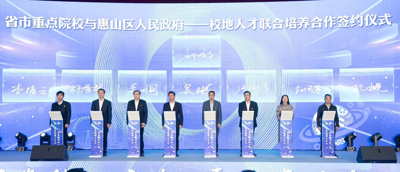 颁奖仪式后,惠山区人民政府与包括我校在内的7所高校、院校举行校地人才联合培养合作签约仪式。张仰飞副院长代表我校签订合作协议,校地双方围绕大学生实习就业、校企人才合作、提高人才培养质量等内容进行了深入交流,并就应用型人才培养、实习基地建设、科学技术合作等方面达成合作意向。