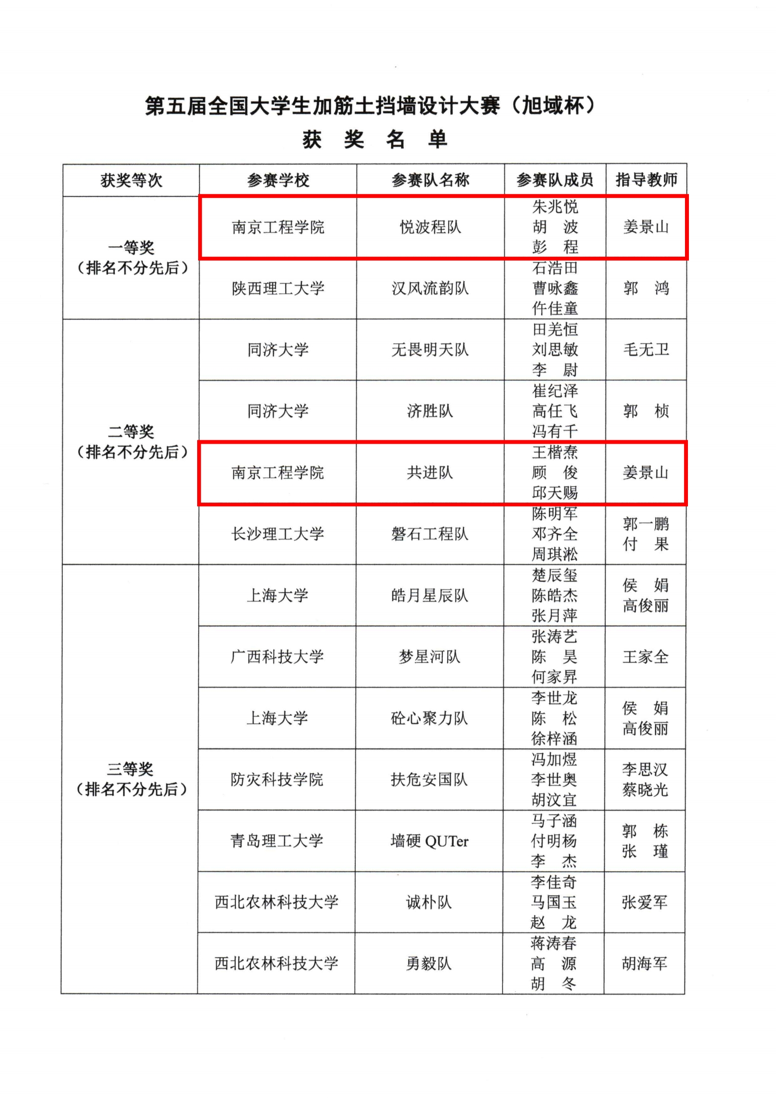 11月26-27日,由中国土工合成材料工程协会主办,青岛理工大学承办的第五届全国大学生加筋土挡墙设计大赛以线上、线下相结合的形式举行。我校建筑凯发姜景山副教授指导的悦波程队(队长:建工203朱兆悦,队员:建工201胡波、建工201彭程)荣获一等奖;共进队(队长:建工203王楷焘,队员:交通201邱天赐、建工201顾俊)设计的模型作品荣获二等奖。