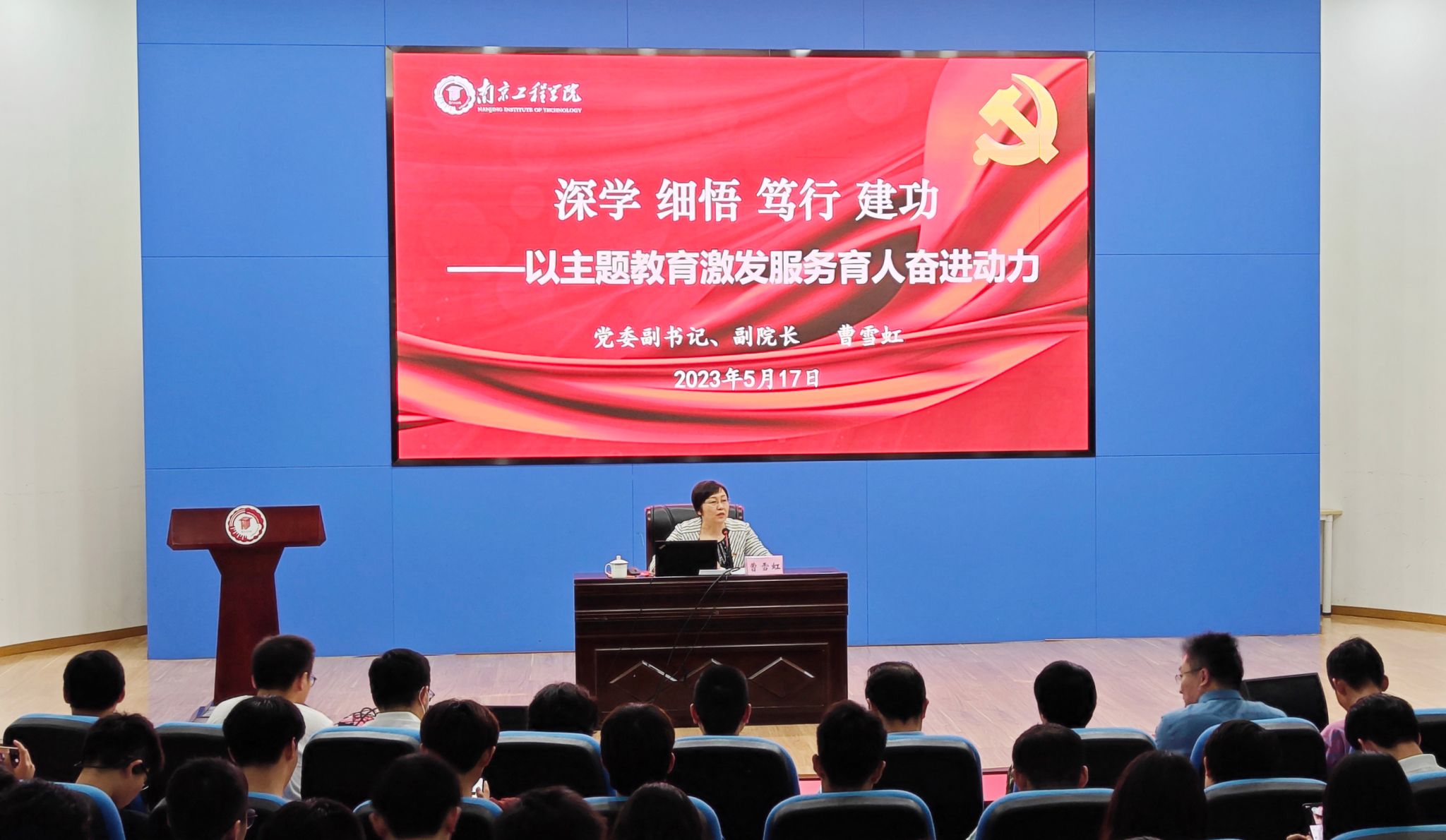 5月17日下午,校党委副书记、副院长曹雪虹以“深学 细悟 笃行 建功——以主题教育激发服务育人奋进动力”为题,在图书馆报告厅为直属单位党总支全体中层干部、党员以及信息与通信凯发师生代表讲授学习贯彻习近平新时代中国特色社会主义思想主题教育专题党课。
