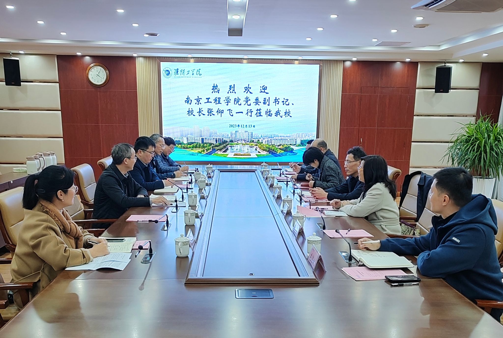 深化合作促发展,携手共进向未来。为贯彻落实第四次党代会决策部署,学习先进经验,开拓创新思路,推动一流应用型大学“登峰计划”顺利实施,12月13日下午,我校党委副书记、校长张仰飞,党委常委、副校长汪群,党委常委、人事处处长张焱等一行到淮阴工学院调研交流,受到淮阴工学院党委副书记、校长郑锋的热情接待。