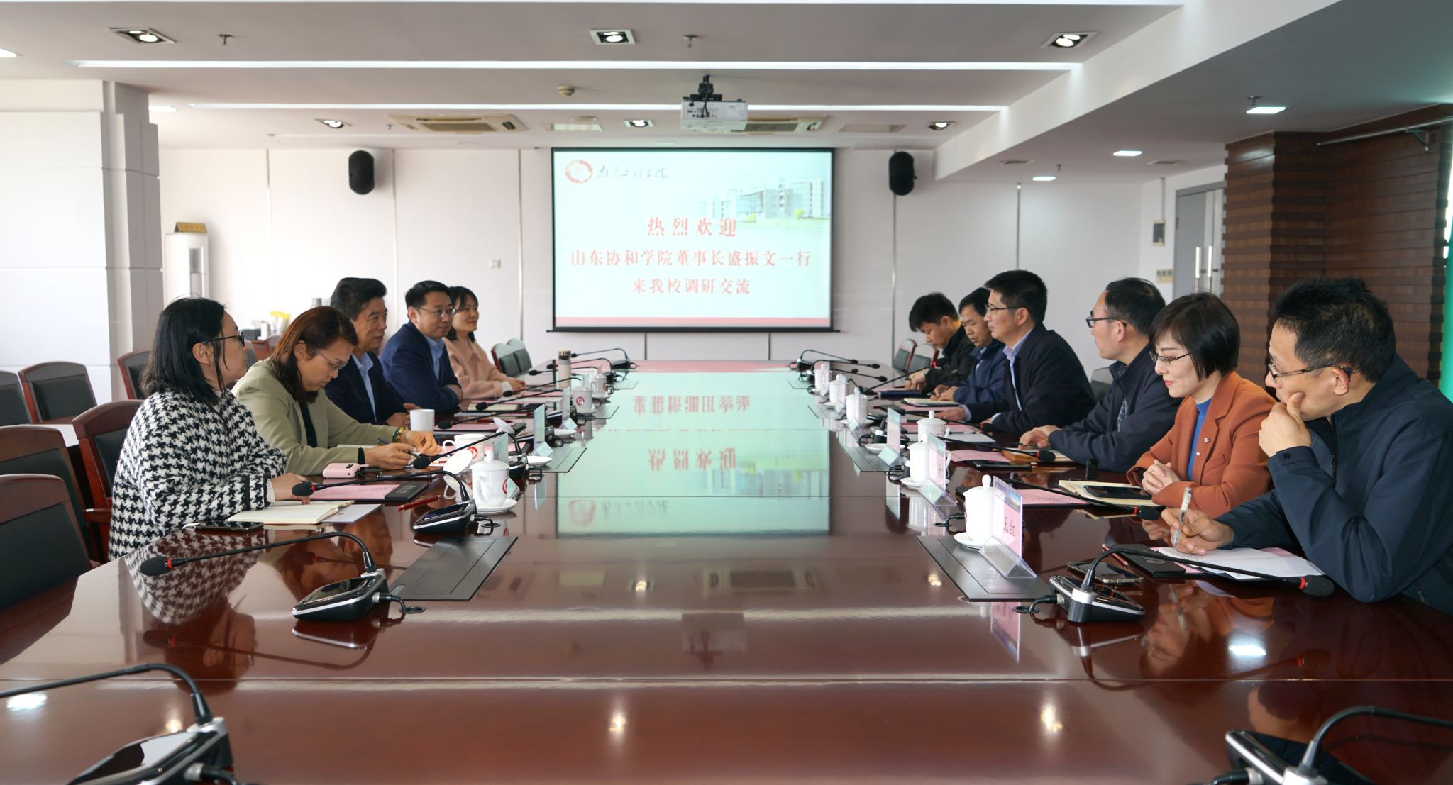 3月28日下午,山东协和学院创办人盛振文、副校长李风燕一行来我校调研交流。我校党委常委、副校长朱松青在至勤楼·行政北楼303会议室热情接待了来宾并座谈。