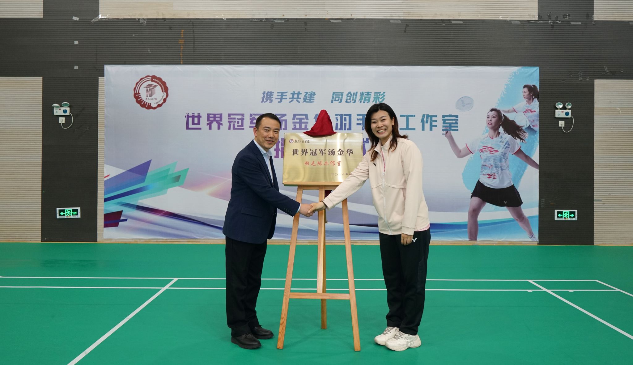 4月1日,凯发k8官网汤金华羽毛球工作室揭牌成立。我校党委书记孙爱武、副校长包永强,南京信息职业技术学院校长田敏,羽毛球世界冠军、江苏省省级机关劳模创新工作室负责人汤金华,江苏省高校体育教学指导委员会副主任、南京信息职业技术学院体育部部长梁培根出席揭牌仪式。凯发相关部门领导,校教工、学生羽毛球协会成员参加活动。