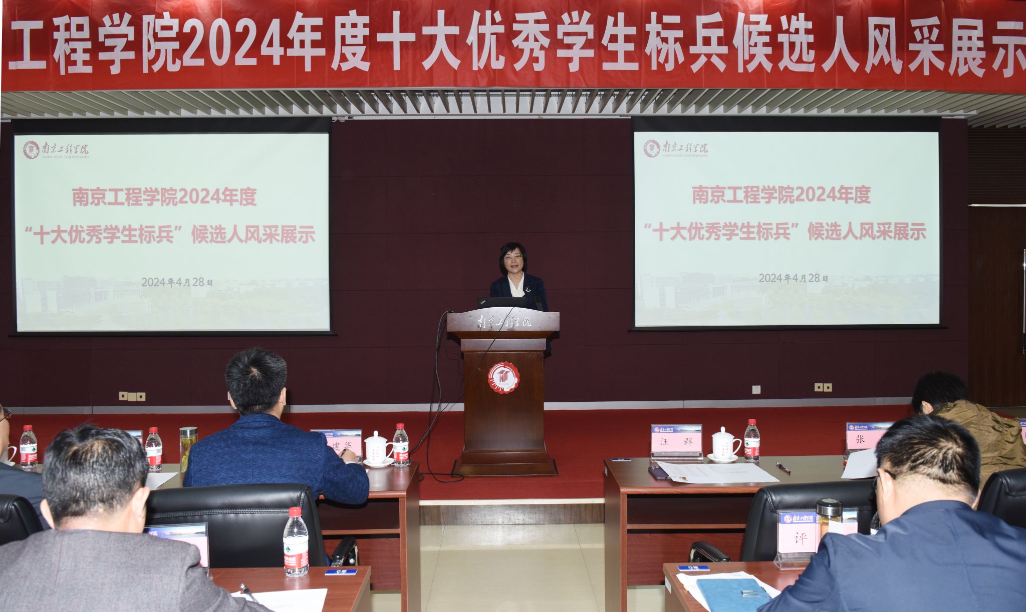 4月28日下午,我校2024年度“十大优秀学生标兵”候选人风采展示活动在至勤楼·行政中心二楼多功能厅举行。党委常委、副校长汪群,相关职能部门负责人、各二级学院学生工作负责人、辅导员及学生代表参加此次活动。