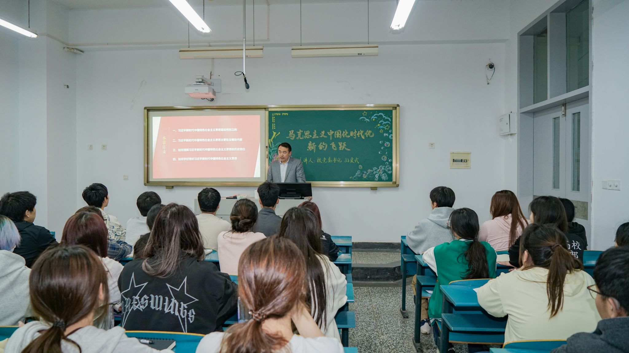 为切实发挥好思想政治理论课主渠道、主阵地作用,用习近平新时代中国特色社会主义思想铸魂育人,4月28日下午,校党委书记、设计学类2301班第二班主任孙爱武以“马克思主义中国化时代化新的飞跃”为题,为同学们上了一堂生动的思政理论课。艺术与设计学院党政负责人、辅导员、班主任等共同聆听思政课。