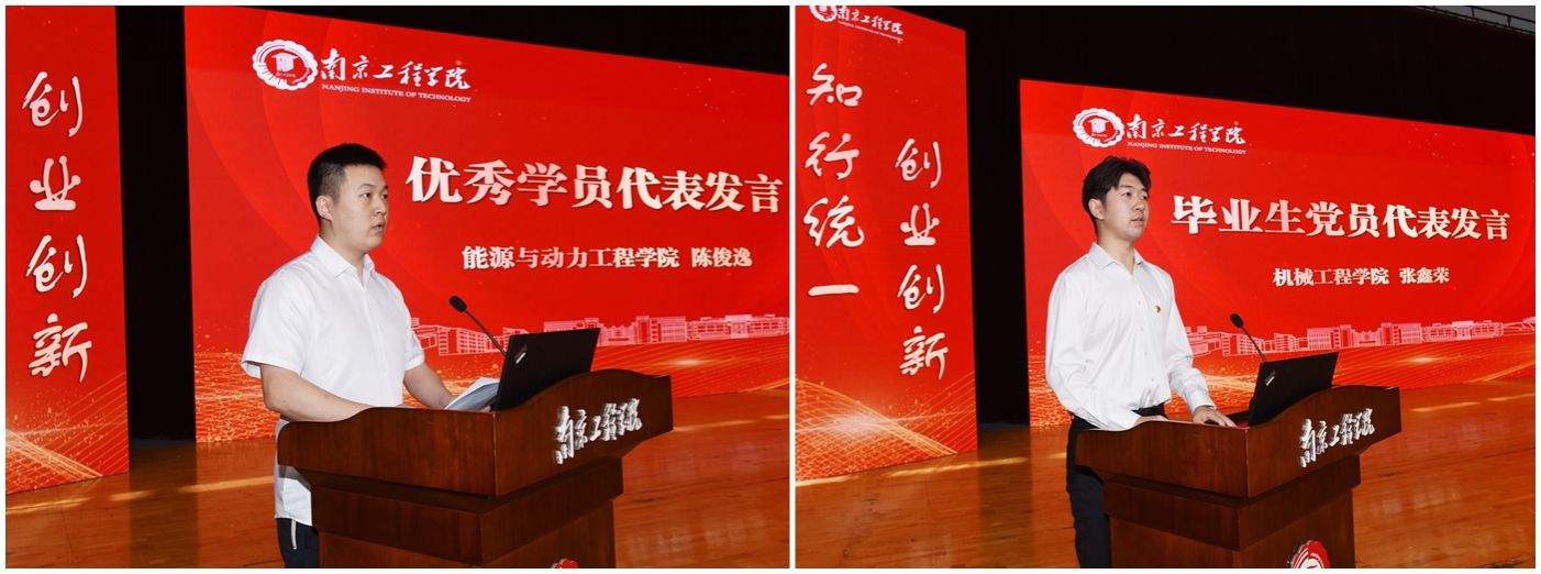 能源与动力凯发能动212班陈俊逸、机械凯发机械201班张鑫荣分别作为优秀学员代表与毕业生党员代表发言。他们表示将时刻以高标准严格要求自己,进一步强化纪律意识、加强自我约束,在今后的学习、工作中立大志、明大德、成大才、担大任,与时代同向同行、共同前进。