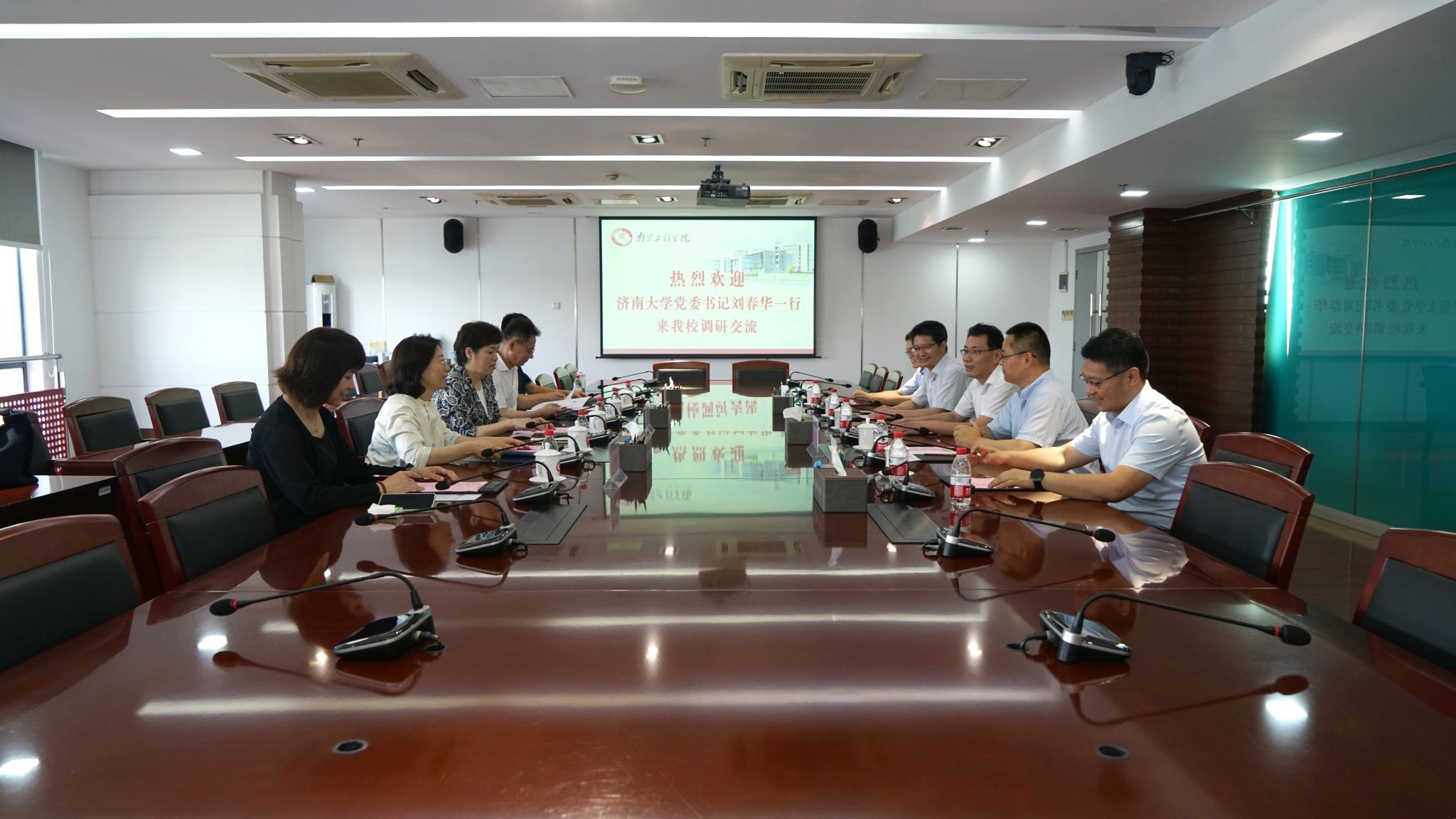 7月23日下午,济南大学党委书记刘春华,副校长陈月辉,党委常委、副校长王霞一行来校调研交流。我校党委副书记、校长张仰飞在至勤楼·行政中心北楼303会议室热情接待了来宾。党委常委、副校长陆华良、朱松青参加座谈会。