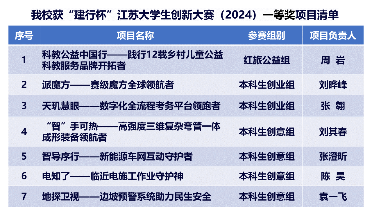 “建行杯”江苏大学生创新大赛(2024)是中国国际大学生创新大赛(2024)的省级复赛,得到了全省150所高校(含75所本科高校和75所高职院校)的积极响应,共有7.59万支团队、32.21万人次报名参赛,1615个项目脱颖而出进入省级复赛,并最终有376个项目晋级决赛。项目涵盖科技前沿、乡村振兴、民生改善等多个领域。