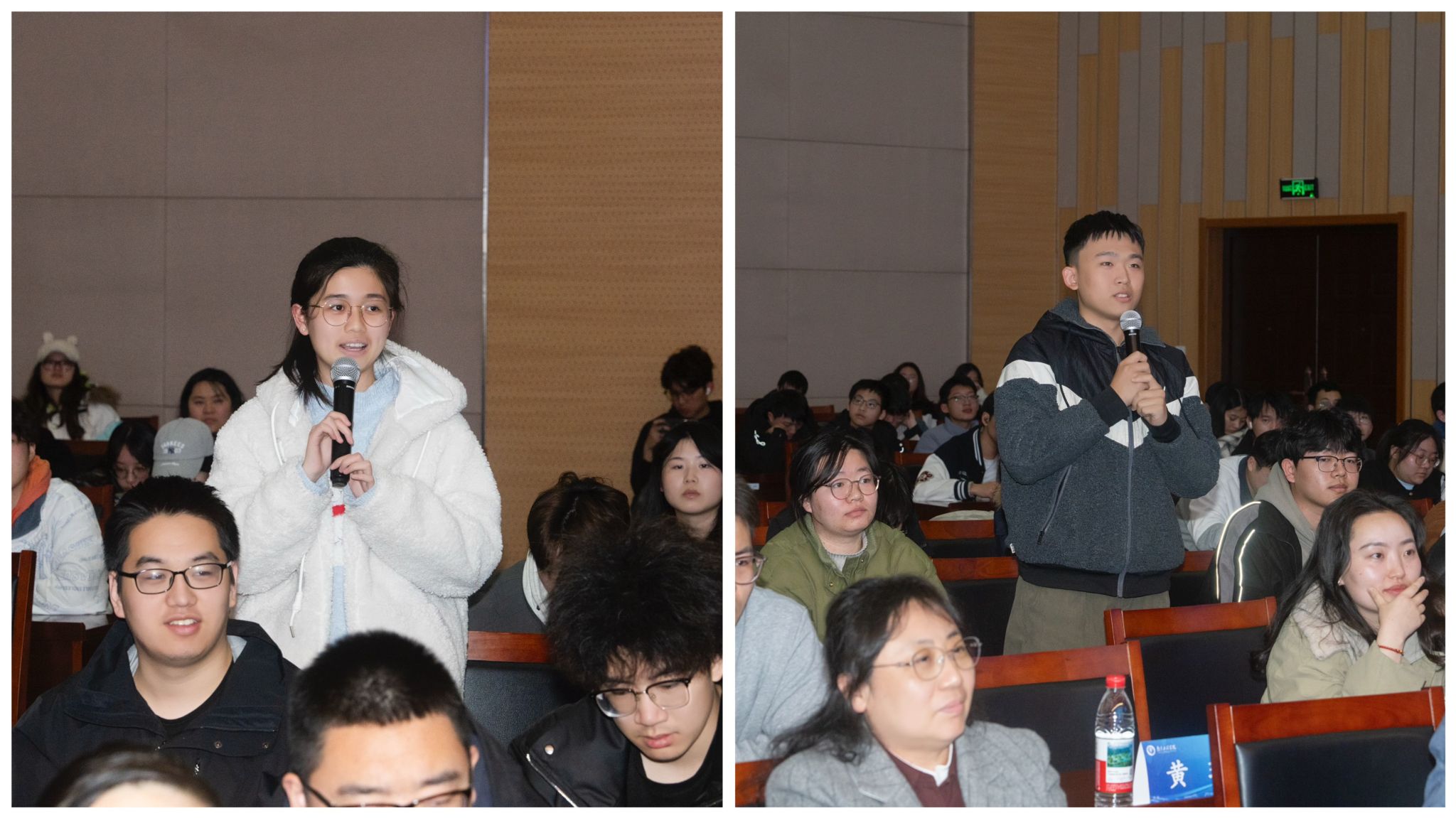 戴伟、朱琳、陆子豪三位辅导员老师,深入剖析就业榜样成长轨迹,鼓励同学们以优秀朋辈为参照,探寻适合自身的发展路径。交流互动中,同学们踊跃提问,榜样耐心解答,现场气氛热烈。