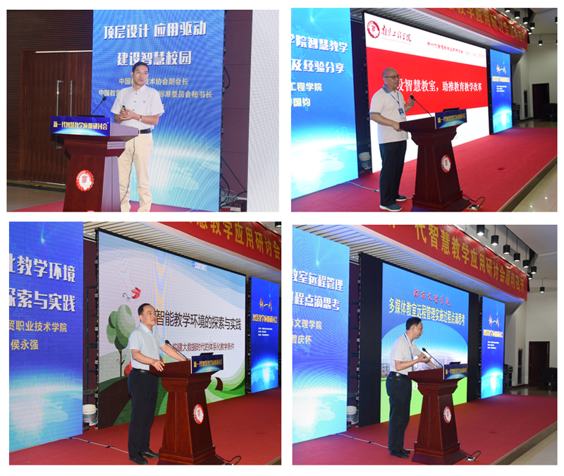 中国教育协会副会长、技术标委会秘书长、清华大学钟晓流教授做了有关智慧校园建设顶层设计的主题报告;我校教务处处长缪国钧教授从高等教育发展态势视角,做了题为“建设智慧教室,助推教育教学改革”的经验交流;广东工贸职业技术学院侯永强处长作了有关“智能化教学环境配置探索与实践”的交流报告;湖南文理学院曾庆怀主任交流了“多媒体教室远程管理实施过程中的点滴思考”。会议还安排了智慧教育应用专家圆桌论坛、智慧教育生态圈企业圆桌论坛和智慧教育应用成果观摩。参会专家、代表围绕智慧校园的建设规范标准、智慧教室的建设、智慧教学管理、大数据时代下教育教学改革的方向进行了充分的讨论与经验交流。在智慧教学管理环节,各位代表现场考察了我校的智慧教室,并在教室进行现场操作和体验,对我校新建设的智慧教室给予了充分肯定。