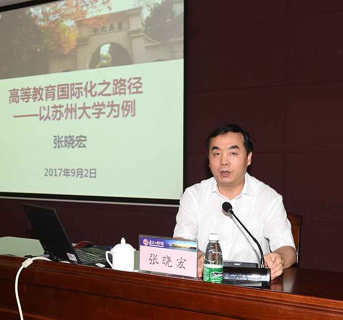 9月2日上午,苏州大学副校长张晓宏作了题为《高等教育国际化的路径——以苏州大学为例》的报告。张晓宏副校长从高等教育国际化的理念、我国教育国际的现状及趋势等几个方面,结合苏大的具体思路、举措和对策,对“大学国际化的战略规划与实践思考”进行了详细解读,为我校推进国际化发展指明了努力方向和路径。