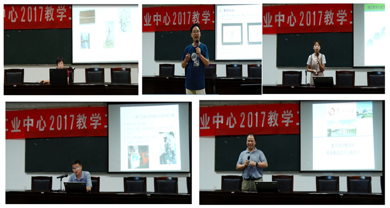 会议期间,工业中心五位奋战在工程实践教学一线的教师进行了教学经验交流。他们或强调在传统实习中要培养学生分析解决问题的能力,激发学生的创新兴趣;或展示自己建立教学论坛与学生互动、拍摄教学小视频解决课程难点的做法;或介绍培养学生团队参加创新竞赛的经验;或分享如何在项目教学中培养学生的工程能力、创新能力和发展潜力。他们的经验分享全面、具体、可行,令与会人员受益良多。