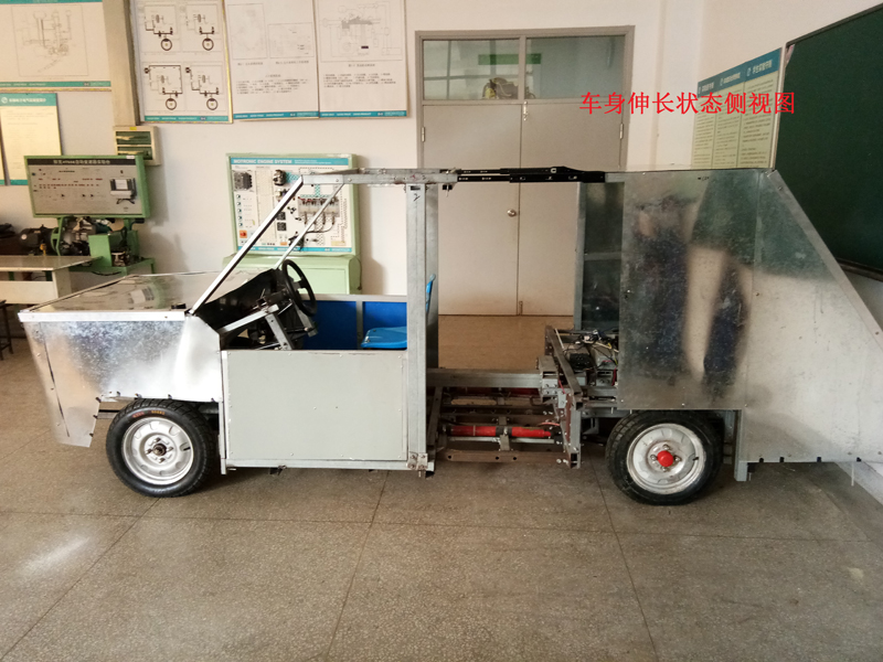 据了解,《可伸缩纯电动汽车》旨在设计出一款新型可伸缩纯电动汽车,整车制作过程中采用新型连接方式和轻质金属材料,实现车身长度可变换和轻量化,具有车身空间利用率高、道路通行能力强等优点。