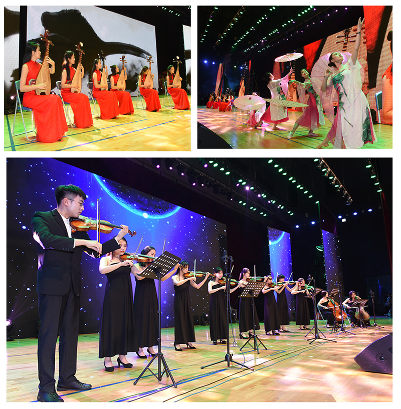 本场晚会还特别邀请了南京医科大学弦乐团和南京晓庄学院民乐团的同学们,他们分别带来了小提琴曲《燃情岁月》和原创琵琶合奏曲《梦入江南》,为我校新生送上诚挚的祝福。