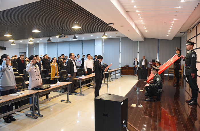 人事处负责人主持了本次新教工入职培训结业仪式,新教工们分组进行了主题总结汇报,他们举起右拳,面对国旗,进行了入职宣誓。