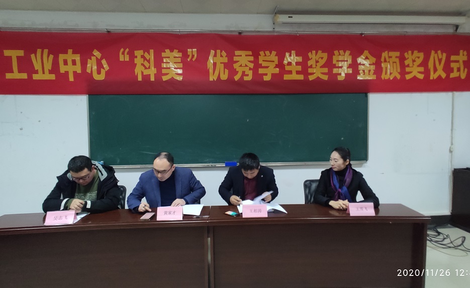 11月26日,工业中心在基础实验楼B114教室举行了“科美”奖学金颁奖仪式,中心党政负责人,南通科美自动化科技有限公司总经理王相涛,公司设计部经理、我校校友吴志飞出席仪式。