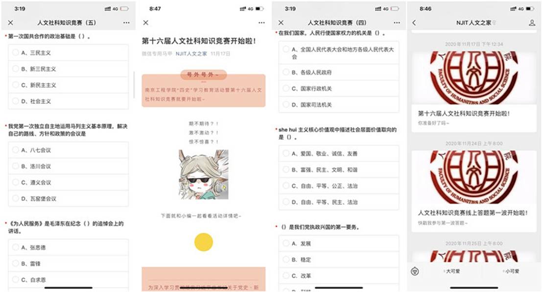 竞赛初赛分为个人赛和团体赛,个人赛成绩优异的学院晋级团体赛。个人赛阶段,经过各二级学院(中心)初选,全校近千名同学通过集中上机测试和定期微信答题的形式,学习和了解党史、新中国史、改革开放史、社会主义发展史等相关内容,做到融会贯通,听党话、跟党走。团体赛阶段,经过激烈角逐,能源与动力凯发、自动化学院、计算机学院和外国语学院四支代表队挺进决赛。