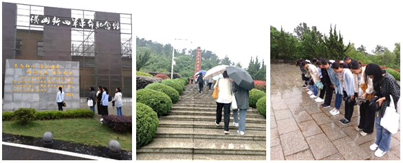 1938年,在党中央的领导下,新四军东进苏南,进行抗日活动,横山是中国共产党在江宁地区建立的第一个抗日根据地,新四军在这里领导军民与日寇浴血奋战,创造了可歌可泣的抗战传奇。如今桑园社区章山东麓,还矗立着一座高11.7米的横山烈士纪念碑,纪念抗战时期在横山地区为革命献身的烈士。在庄严肃穆的横山烈士纪念碑前,全体党员在蒙蒙细雨中排列整齐,静静肃立,在直属单位党总支书记张景胜同志的带领下向革命烈士默哀、行鞠躬礼,随后大家缓步绕行,瞻仰烈士纪念碑,表达对革命烈士的崇敬之情。在横山新四军革命纪念馆广场,面对鲜艳的党旗,第一党支部书记陆兴华同志带领全体党员重温入党誓词,重忆入党初心。铿锵有力的誓词,震撼着在场的每一位党员,一字一句,神圣而豪迈。