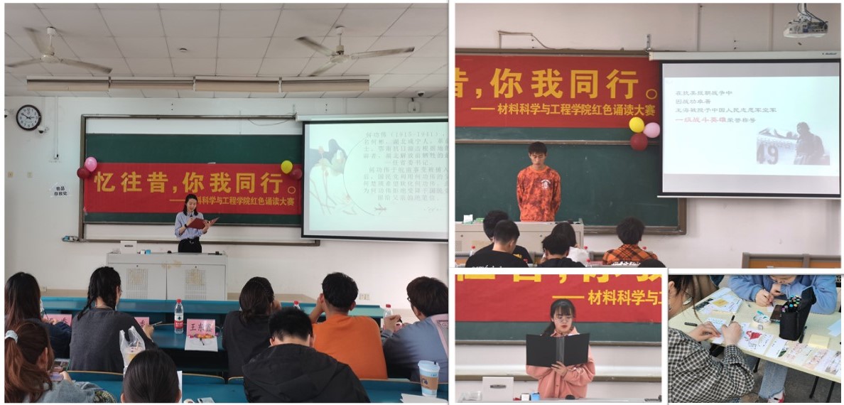 活动在诗朗诵《祖国啊,我亲爱的母亲》中拉开序幕,诵读者们满怀着对党感恩的心,用饱满的热情朗诵了《我爱这土地》《左权家书》《我用残损的手掌》《党的赞歌》《沁园春·长沙》《党旗飘飘》《相约第一百个春天》等篇章,或慷慨激昂、气势恢宏,或声情并茂、感人肺腑,彰显出材料学子牢记初心使命、勇于担当作为的精神风貌。整场活动精彩纷呈,现场不时响起热烈掌声。诵读结束后,同学们相互交流阅读红色经典的心得和体会,收集并制作了红色经典明信片。“通过诵读经典,重温党史,我们深切感悟到党的光辉历程、党的优良传统、先进榜样的磅礴力量,也更加坚定了我们的理想信念,激发起同学们爱党爱国爱人民爱社会主义的热情。”参与同学如是说。