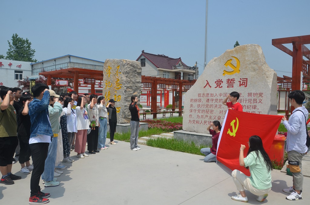 1927年1月,王庆生等革命先辈秘密工作,在海安境内成立了中国共产党第一个党支部,史称“营溪支部”,支部旧址即今雅周镇东夏村党群服务中心驻地。在中共营溪支部纪念馆,师生详细了解了当地革命斗争的历史,并集体向营溪战斗纪念碑鞠躬致敬。在东夏村党群服务中心,师生参观了初心广场和东夏初心教育馆,并在党总支副书记王雪飞的带领下重温入党誓词,面向党旗宣誓。东夏村现任党支部书记王海洋是我校人文学院2012届毕业生,他工作表现出色,先后被评为“南通好青年”“南通市农村致富带头人”等荣誉称号。王海洋书记亲自为同学们讲述了营溪支部诞生和发展的历史,以及近年来村党支部带领群众继续奋斗,不断迈上新台阶的历程。“一个党员就是一面旗帜,一个支部就是一个堡垒,党员就要发挥模范带头作用。”他鼓励同学们要加强学习,不断提高政治思想认识,同时要努力学习、知行合一,培养综合实践能力,要做政治过硬,能力突出的新时代青年。