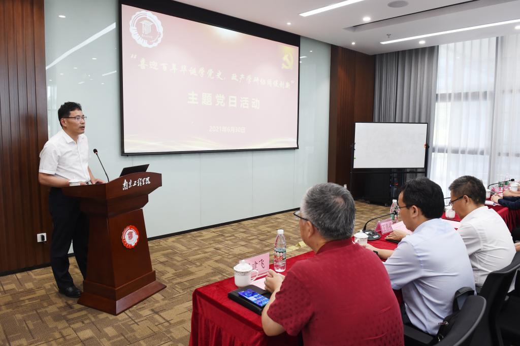 为庆祝中国共产党百年诞辰,回顾党的奋斗历史,激励广大党员坚定理想信念,激发基层党组织活力。6月30日下午,我校产业技术研究院党支部和国网电力科学研究院实验验证中心自动化党支部在前期双方结对共建的基础上,共同举办了“喜迎百年华诞学党史,政产学研协同促创新”主题党日活动。我校党委常委、副院长张仰飞,江宁科技局副局长王文娟,鼓楼区政协常委徐立,国网电力科学研究院有限公司实验验证中心主任王善祥、党总支书记万德春,我校科技与产业处相关负责人等参加了本次活动。