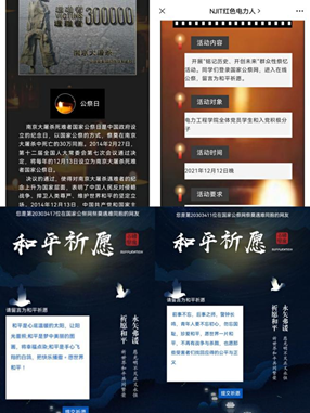 12月13日,第八个南京大屠杀死难者国家公祭日,草木含悲,山河垂泪。为悼念南京大屠杀遇难者同胞,缅怀为中国人民抗日战争献出生命的革命先烈和民族英雄,宣示牢记历史、不忘过去、珍爱和平、开创未来的坚定立场,电力凯发于12月12日晚20时至12月13日上午10时开展侵华日军南京大屠杀遇难同胞线上祭忆活动。学院500余名学生党员和入党积极分子参加活动,通过留言表达哀思,为和平祈愿。