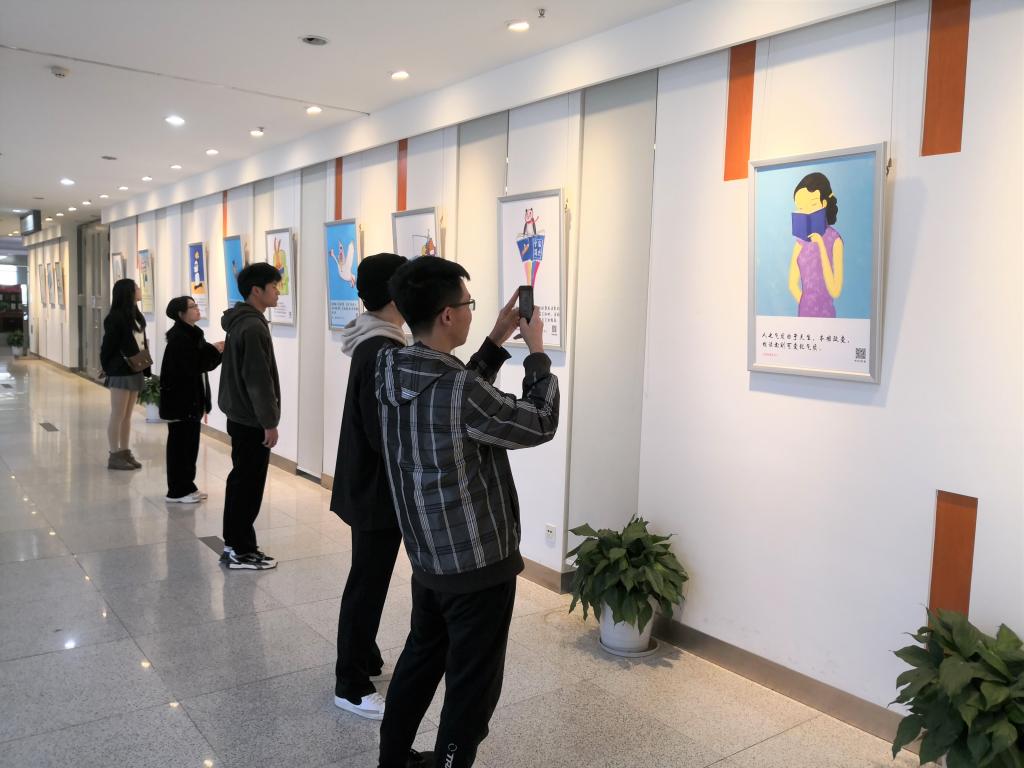 “这样的手绘海报虽然不是出自绘画大师,但是很有童趣,上面的文字虽然平实简单,但能引人深思,回味无穷”。金材201班的朱义豪在观展时说。物流201班的李采珍欣赏完所有作品后表示:“展览中让我感受最深的一句话是‘阅读的人一生能体验千百种人生,不阅读的人只度过自己的一生’,这句话让我深刻地体感受到阅读的意义和魅力,也体会到图书馆的价值和重要性。”
