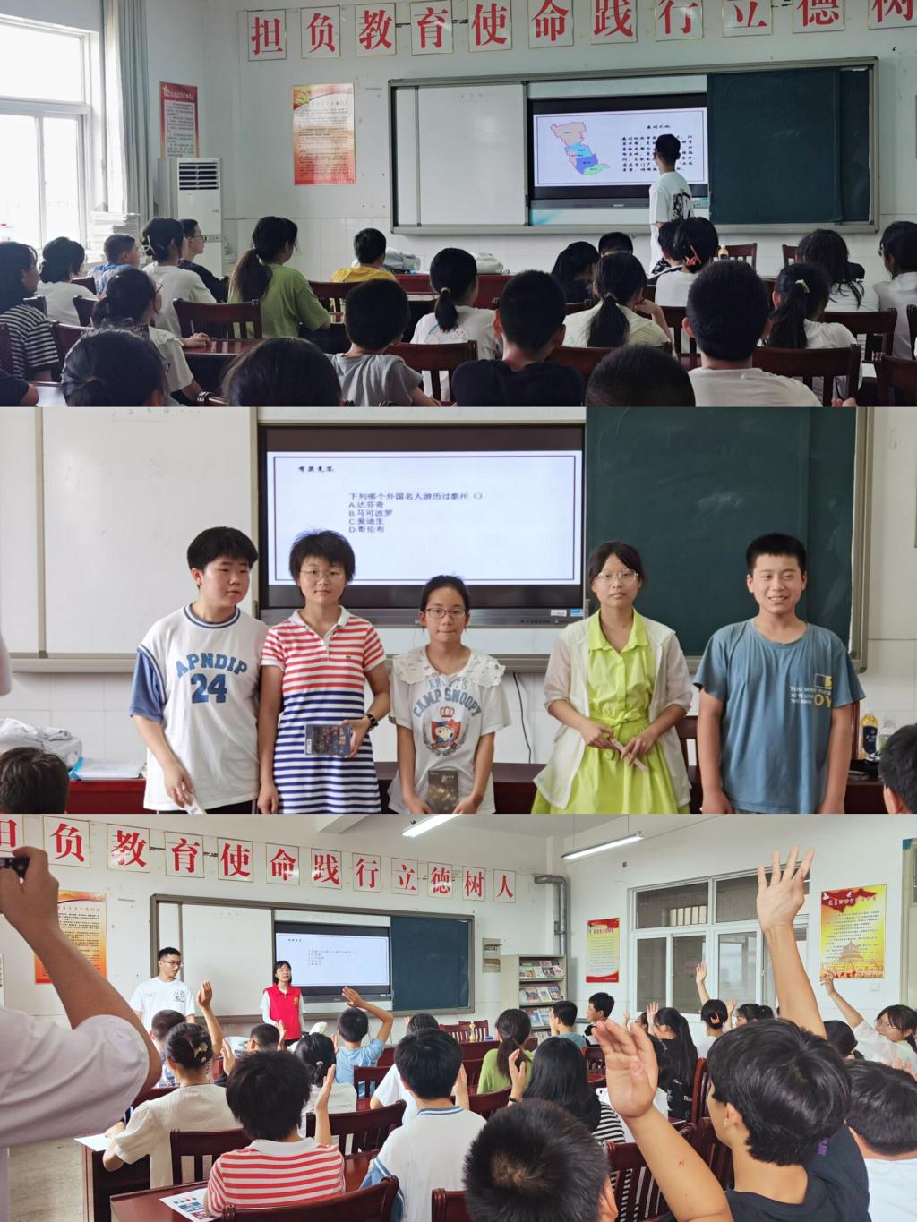 走进校园,团队成员介绍了当地不同方言的妙处,和少年们一起探讨了泰州各种传统文化节日以及近年来的发展情况,结合实际感悟脚下这片乡村热土的发展和变化。此外,实践团队还开展了泰州历史相关的有奖竞答活动,现场氛围积极活跃,“原来家乡还有这么多趣事和知识,感谢大哥哥大姐姐们的讲解。”小朋友们如是说。