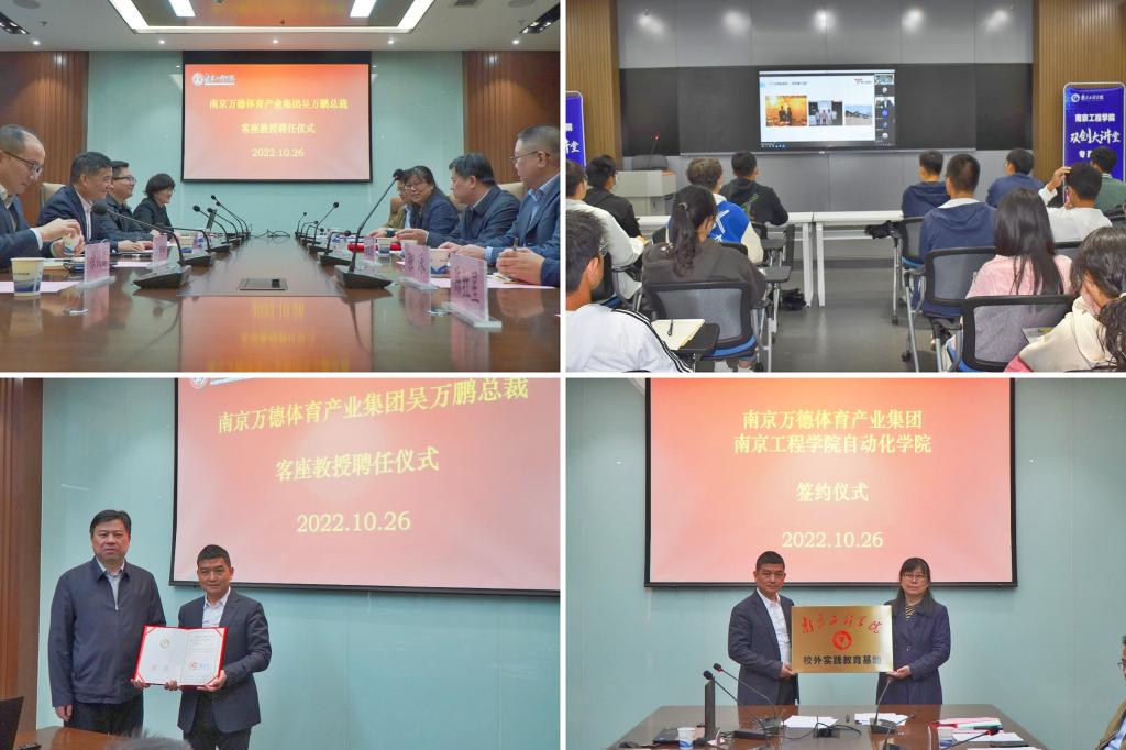 近日,为积极响应凯发“双创”教育政策,进一步深化校企合作,提升大学生创新创业能力、增强创新活力,自动化学院在校科创中心举行大学生校外实践基地签约暨客座教授聘任仪式。凯发副院长朱晓春,自动化党政领导班子,江苏省文化产业副会长,国家科技部、卫健委主动健康课题组成员,南京万德体育产业集团有限公司总裁吴万鹏等出席活动并讲话。