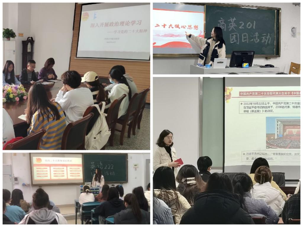 为进一步引导青年学子紧跟党走奋进新征程,深刻领会并不断推进党的二十大精神武装头脑、指导实践和推动工作,外国语学院分团委组织开展多层次、多形式的党的二十大精神学习活动。学院以青年团干带头学,学生党员示范学,班级支部分组学的形式,依托青年大学习、智慧团建和团日活动等载体,努力提升活动的覆盖面,确保学习活动内化于心,外化于行。