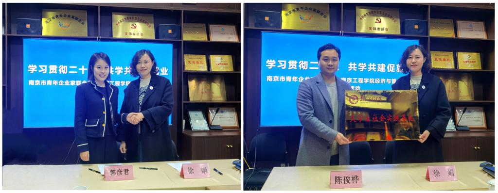 为深入学习贯彻和落实党的二十大精神,充分发挥校企资源优势,实现各方资源共享、共同发展,12月6日,经济与管理学院赴南京市青年企业家联合会(青企会)开展共学共建及2023届毕业生推介活动,以党的二十大精神为指导推动学院就业工作落实落细。学院相关负责人、青企会代表及学院党支部书记代表、学生党员代表参加活动。