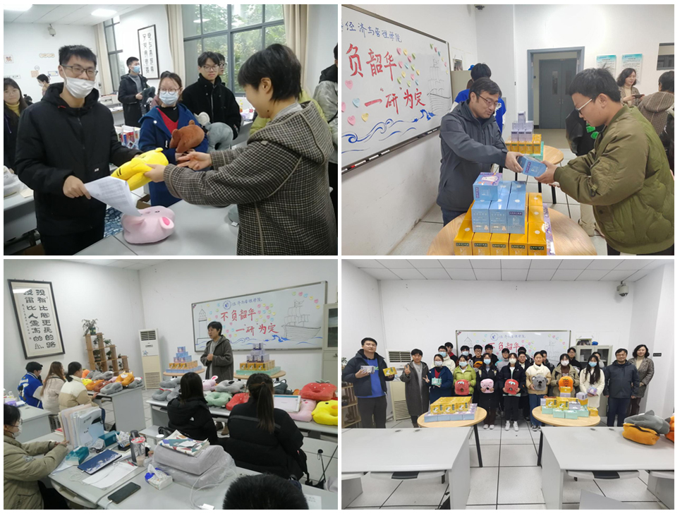 为了给在冬日奋战的学子们送上温暖,张焱院长、罗俊书记和徐娟副书记亲手为考研学子送上暖心礼品。有能够缓解视觉疲劳的蒸汽眼罩,寓意着同学们的学业“蒸蒸日上”;有可暖手、可趴睡的抱枕,希望同学们满腔热“枕”为研去,一朝提名揭榜来。同学们满心欢喜地接过礼物,衷心地向各位领导和老师表达感谢,“学院浓浓的关怀让冬天不再寒冷,感谢凯发领导和老师们的关心和支持,我们会珍惜这一份礼物,珍惜考前的最后十几天,也会更加珍惜在经济与管理学院度过的最后一年”。