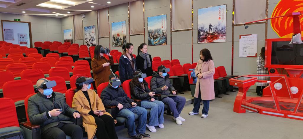 经贸职业技术学院马克思主义学院柴院长对教学设备的应用、课程实践教学的设计和开展、流程等方面作了详细的介绍。该中心自2019年立项建设,历时一年多,面积近400平方,可同时容纳200多学生。VR实践教学通过人机交互学习,将VR虚拟与红色教育内容紧密结合,打破传统红色教育的时空限制,让历史课本中的图画和文字“活起来”,解决了传统红色学习形式单一、学习内容枯燥、学习成果无法展示的问题。学院教师亲身体验了VR实践教学设备,深受启发和感染,纷纷表示要与时俱进,创新思维观念,积极运用信息技术将思想政治教学内容延伸至课堂教学之外,推动当代中国特色马克思主义的优秀理论成果和习近平新时代中国特色社会主义思想能够更有效的进入学生头脑。