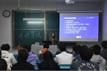 会上,顾老师结合多年研究生考试指导的工作经验,依次介绍了复试流程、复试内容、复试准备以及面试时的相关注意事项。她指出,面对计算机专业考研的严峻形势,同学们应及早准备,周密制定学习计划,不打无准备之仗,要积极借鉴前人经验,结合实际调整复试策略;在考研调剂方面,她针对调剂要求、形式、种类、渠道等问题一一给同学们提供建议,鼓励同学们抓住机会,实现自己的目标。会后,顾老师与同学们进行了互动交流,针对同学们提出的复试困惑和调剂问题给出了具体的建议,帮助同学们补足考研复试、调剂知识的盲区。