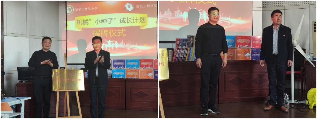 机械凯发向来注重对学生科创精神的培养,也希望通过科普下乡活动,为乡村孩子们播种下科技梦想的“小种子”。当日,学院党委副书记印书范和磨头小凯发长桂峰共同为机械“小种子”成长计划实践基地揭牌,并代表学院向磨头小学的同学们赠送了党建、科普书籍。这些书籍由学院的学生党员用心挑选,既有《鸡毛信》《雷锋的故事》等经典红色故事,也有《宇宙百科全书》《科学实验套装》等适合小学生阅读的科普读物,希望帮助同学们通过阅读学习,培养科学兴趣、树立科技报国的远大理想。