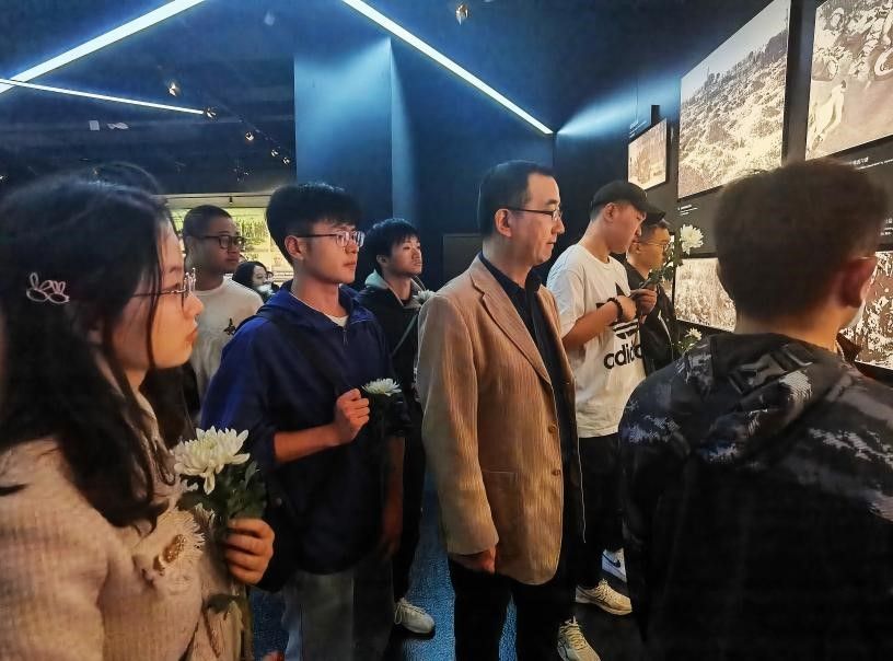 在祭坛处,同学们深深鞠躬以表达对死难者的敬畏与哀悼。“缅怀英烈忆峥嵘,砥砺前行铸辉煌。”此次主题活动,不仅是一次铭记历史和悼念遇难同胞的精神洗礼,更是一堂高质量的弘扬民族精神、坚定理想信念的爱国主义教育课,激励着青年学生奋发图强。“昭昭前事,惕惕后人。作为当代青年,心中应时刻牢记时代之使命,勿忘国耻,刻苦学习,认真工作,努力增强为人民服务的本领,为实现‘中国梦’贡献属于自己的一份力量。”同学们默默在心中宣誓。