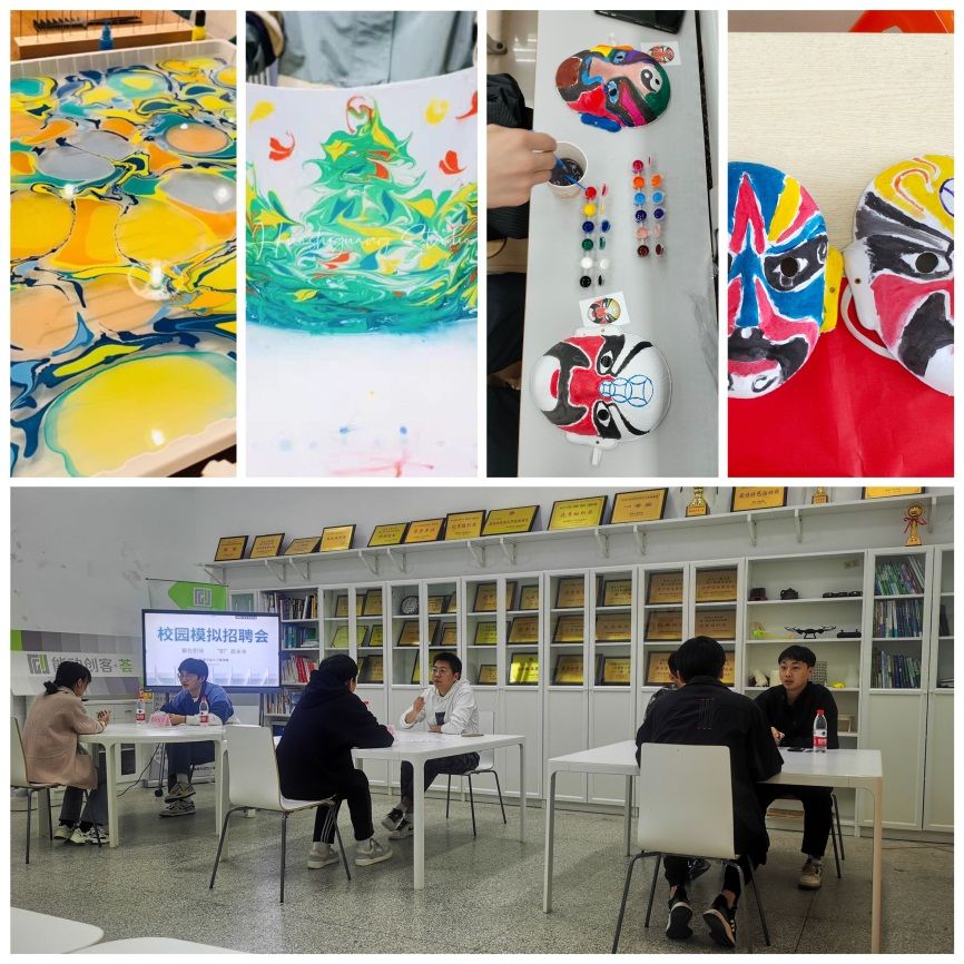 特色活动展风采。学院举办“青春逐梦,‘职’通未来”简历大赛暨模拟招聘会,邀请已被南京南瑞继保电气有限公司、中国核工业集团公司等行业知名单位录用的优秀毕业生担任“主考官”,帮助同学们提升职业素养,增强求职竞争力;“传统的非遗传承方式正越发面临‘断层’、‘失传’的风险。”为了让更多人加入中华优秀传统文化的传承队伍,学院开展“我是非遗传承人”主题团日活动,带领大家体验京剧脸谱、扎染等非遗项目,让非遗技艺传承活起来,从而坚定文化自信。